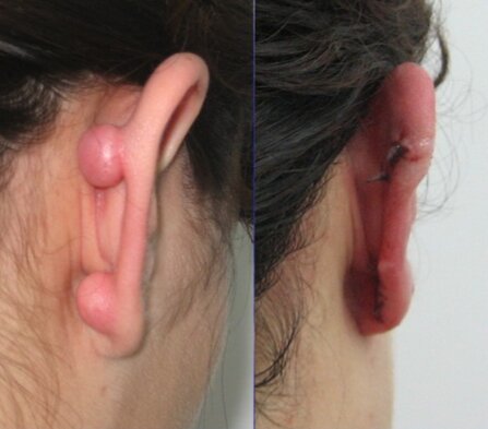 A lipoma is fat tissue different of the rest of the body that usually generates a lump under the skin. This lumps usually are hard they tend to grow overtime and they can appear anywhere in the body including the head and they are painless. A well planned removal is performed after ultrasound under local anesthesia. If they are not removed the risk of cancer could increase.